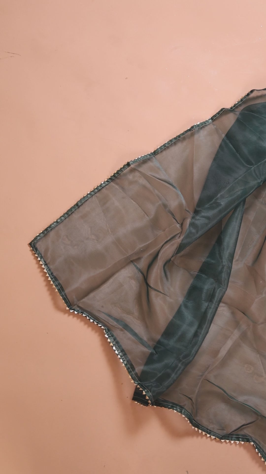 Deep Bottle Green Unstitched Organza Tissue Suit Set with Gota Patti & Pearl Handwork