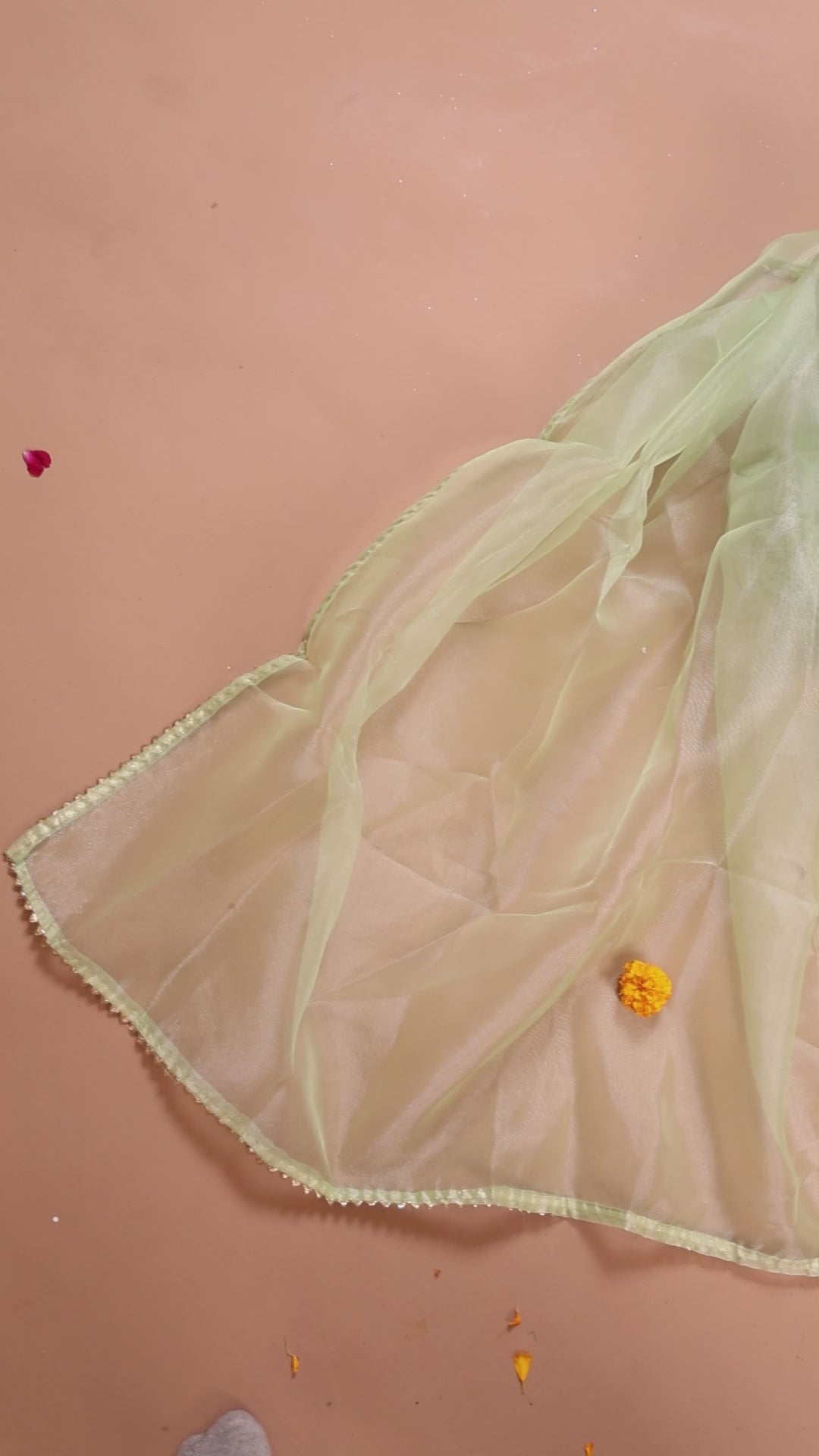 Mint Green Unstitched Organza Tissue Suit Set with Gota Patti & Pearl Handwork
