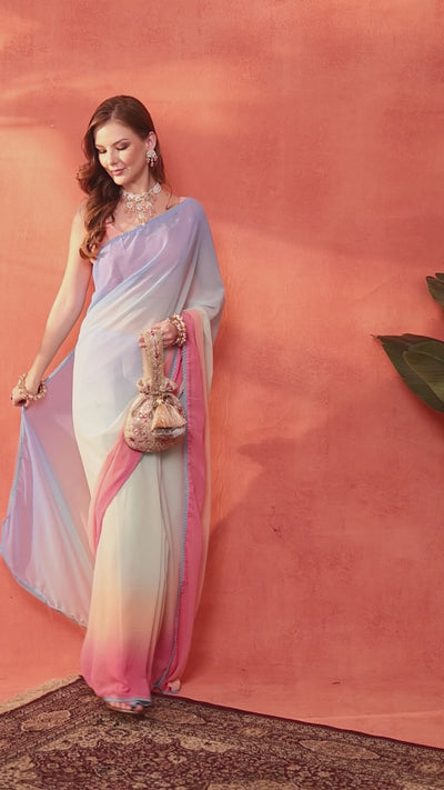 Pastel Blue, White, and Pink Organza Rich Border Saree