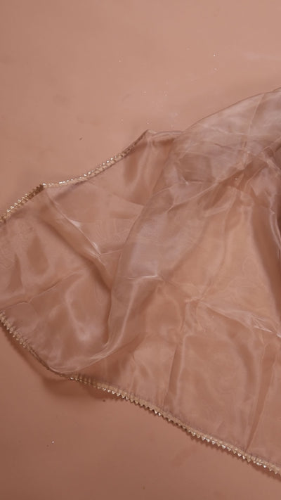 Champagne Beige Unstitched Organza Tissue Suit Set with Kundan & Pearl Handwork