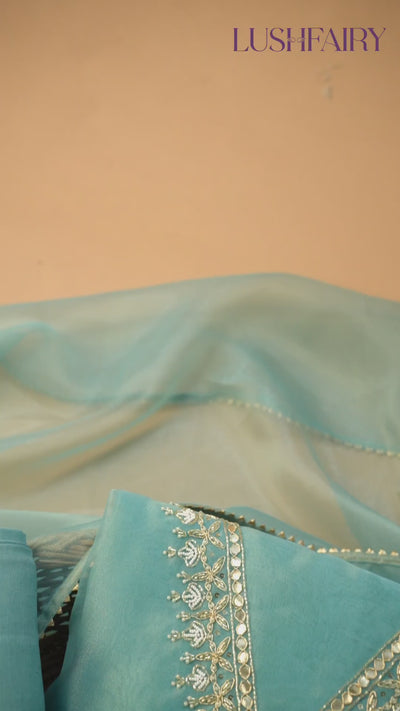 Electric Blue Elegance Unstitched Organza Tissue Suit Set with Handcrafted Gota Patti & Pearl Work