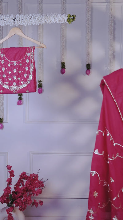 Step into the world of elegance with this Gulabi Grandeur Semi-Stitched Lehenga Set, a masterpiece of traditional craftsmanship and timeless sophistication. Made from Premium Chanderi Silk, this set is adorned with handcrafted heavy Gota Patti and pearl work, exuding a regal charm. The stitched lehenga with a 1.5-meter flair ensures a graceful drape, while the unstitched kurta allows for a customized fit. Perfect for weddings, festive occasions, and cultural celebrations, this ensemble blends heritage with contemporary style.