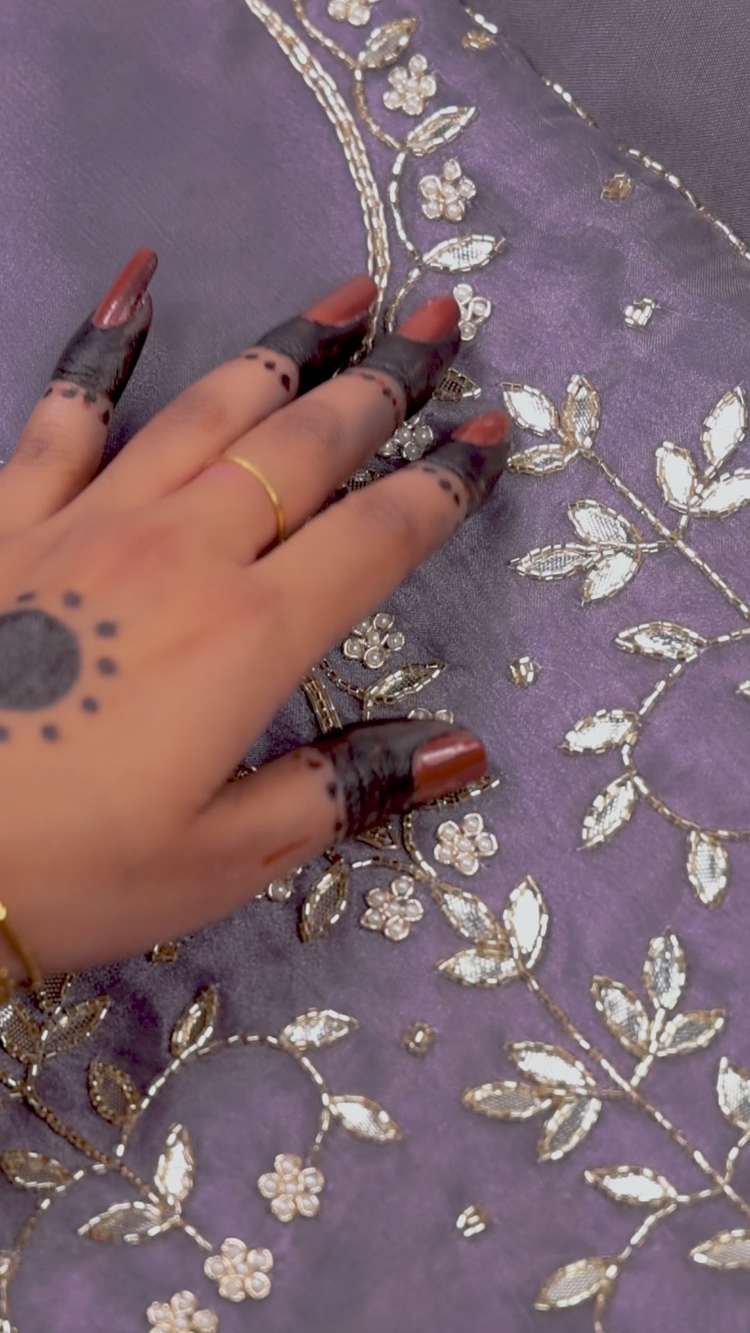 Orchid Mist Unstitch Suit with Handcrafted Heavy Gota Patti and Pearl Work