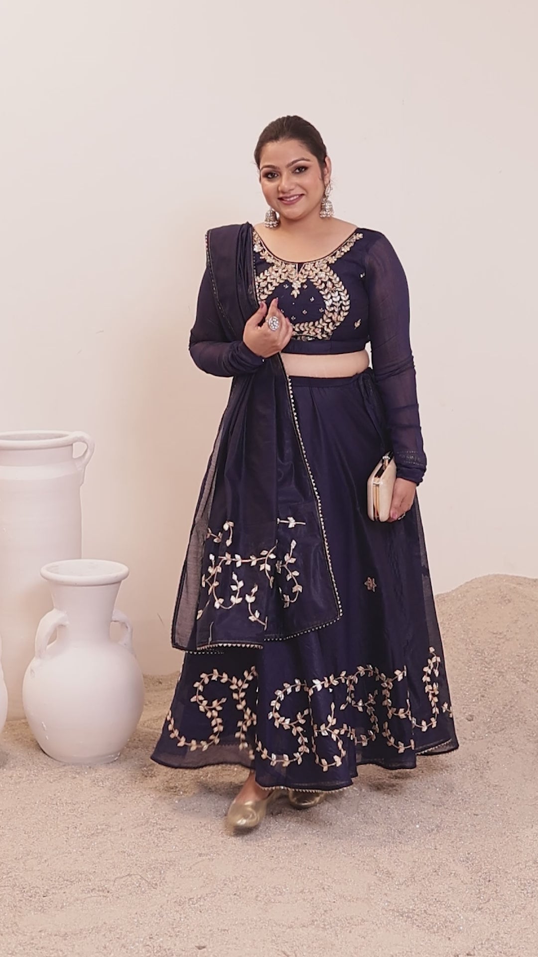 Step into the spotlight with the Royal Blue Grandeur Lehenga Set – a perfect harmony of luxury fabric, intricate craft, and royal elegance.